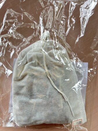 クロモジ、ホーリーバジル、レモンバーベナ、レモングラスなどのドライハーブを、不織布パックに入れていただきます。